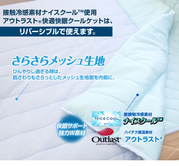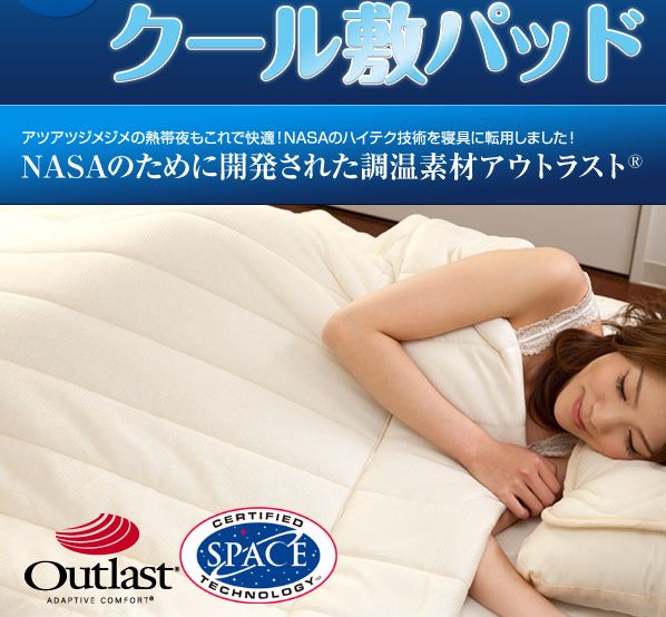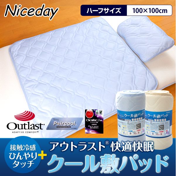 ひんやりアウトラスト通販。快適快眠クール敷パッド・クールケット・枕パッドを即日発送(送料無料有り)、新素材ナイスクール全品送料無料。ひんやり通販商品を特別価格でお届けします。 ハーフ敷パッド 送料無料 特別キャンペーン中。 接触冷感ひんやりアウトラスト通販。